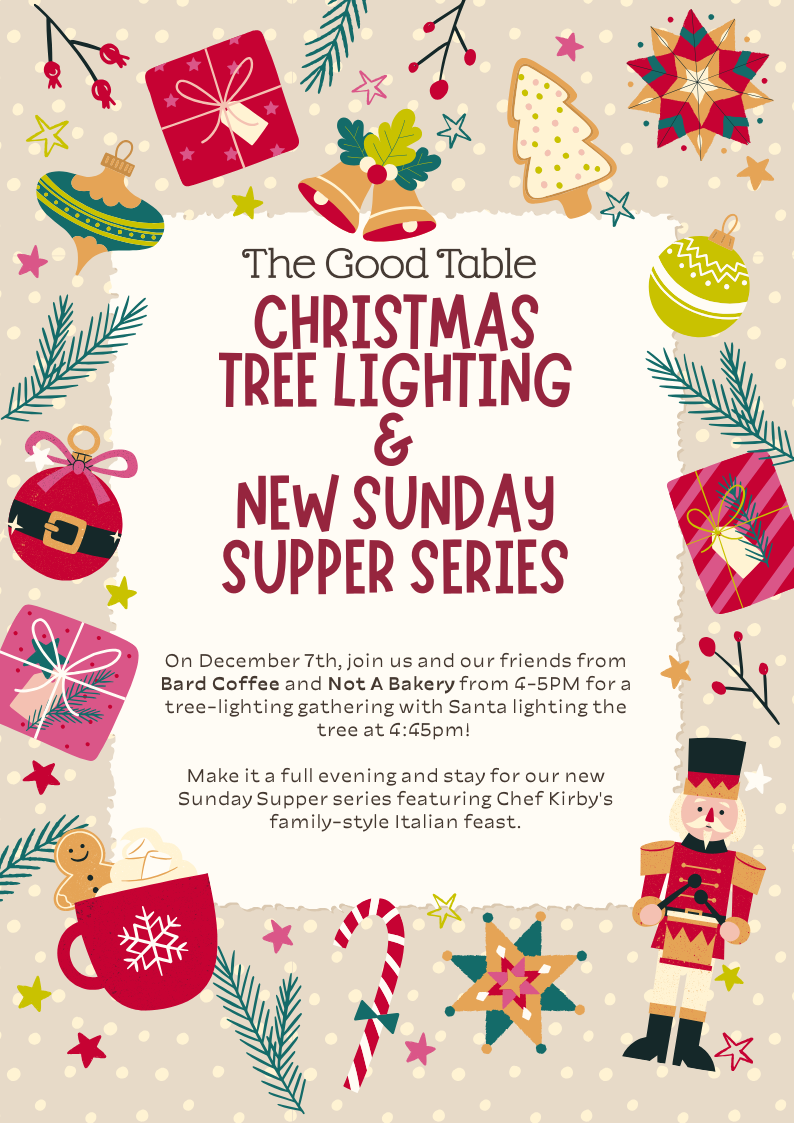 Join us at The Good Table this holiday season for a tree-lighting ceremony, brunch with santa, special Sunday Suppers, and more!